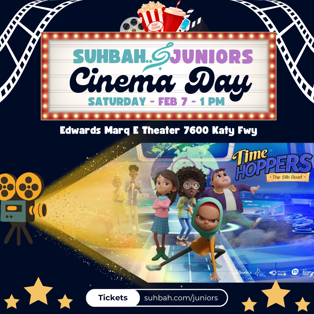 We’ll be watching *Time Hoppers: The Silk Road* — the first Muslim animated film to receive a nationwide theatrical release! This exciting film highlights Muslim heroes like Al-Khwarizmi and Mansa Musa and is showing for two days only (Feb 7 & 8).